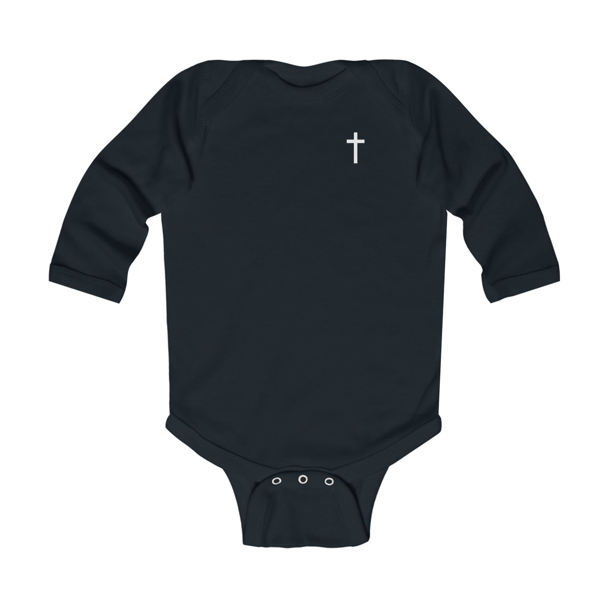 The cross on this onesie serves as a gentle reminder of the values and beliefs that guide us, making it more than just a piece of clothing—it's a declaration of devotion and spirituality. This long sleeve onesie allows your infant to wear their faith proudly, embodying the spirit of Christianity from the very beginning.