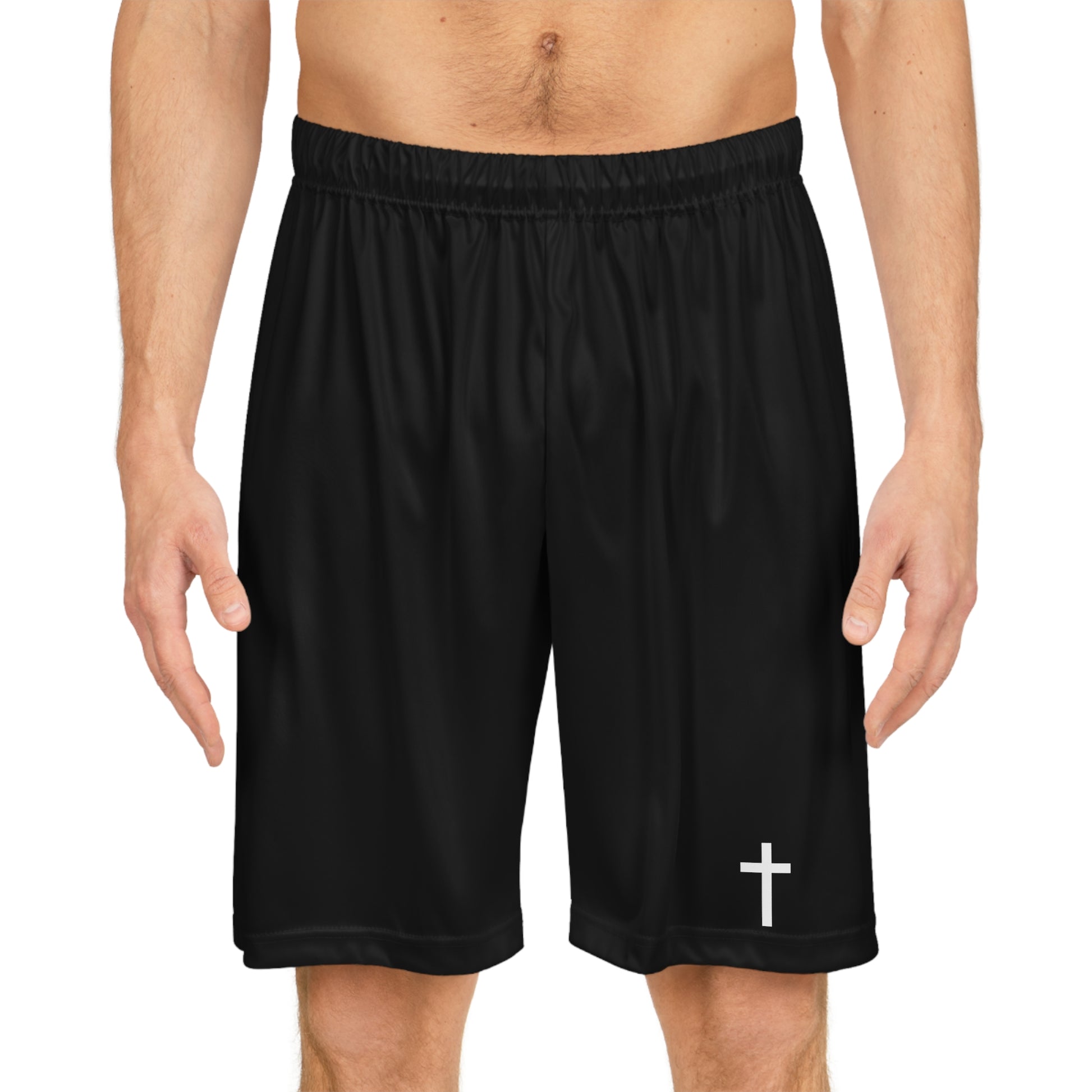 Elevate your game with purpose and style. These basketball shorts are made from 100% moisture-wicking polyester, designed to keep you cool and dry during every play. Featuring a simple yet impactful cross design, these shorts symbolize your faith and commitment both on and off the court. Lightweight, durable, and tailored for performance, they are perfect for athletes who carry their faith boldly and confidently. Whether you're hitting the gym, playing on the hardwood, or just lounging, these shorts keep your spirit strong and your moves sharp.