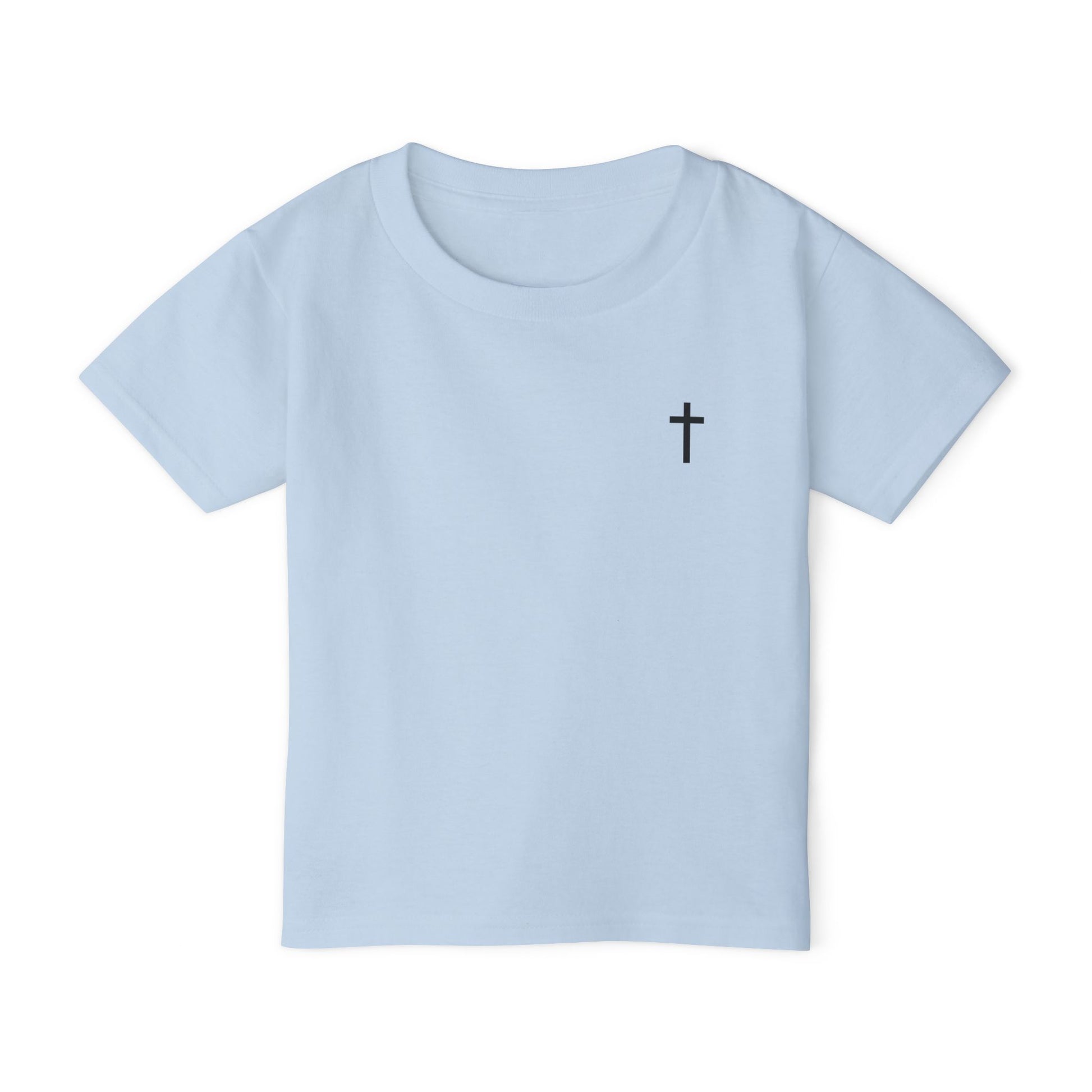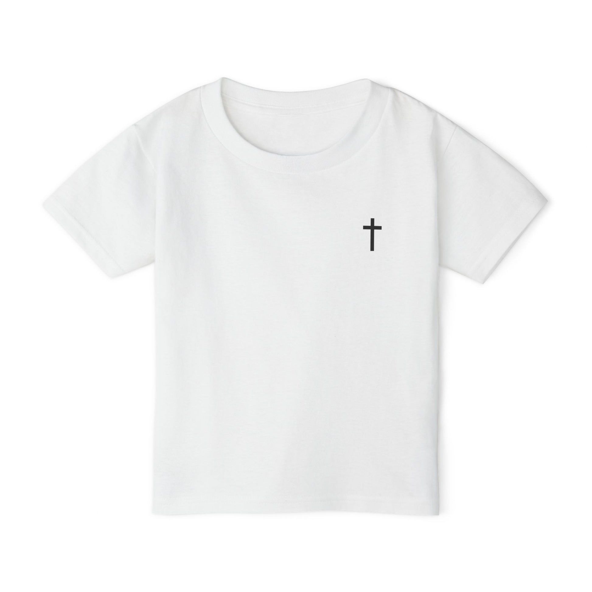 Introducing our Toddler Heavy Cotton T-Shirt, the perfect blend of comfort and faith for your little one. Crafted from 100% premium cotton, this durable tee offers a soft and breathable fit, ideal for everyday wear. The shirt features a simple yet elegant Christian cross, symbolizing love and belief in a timeless design that speaks to the heart.