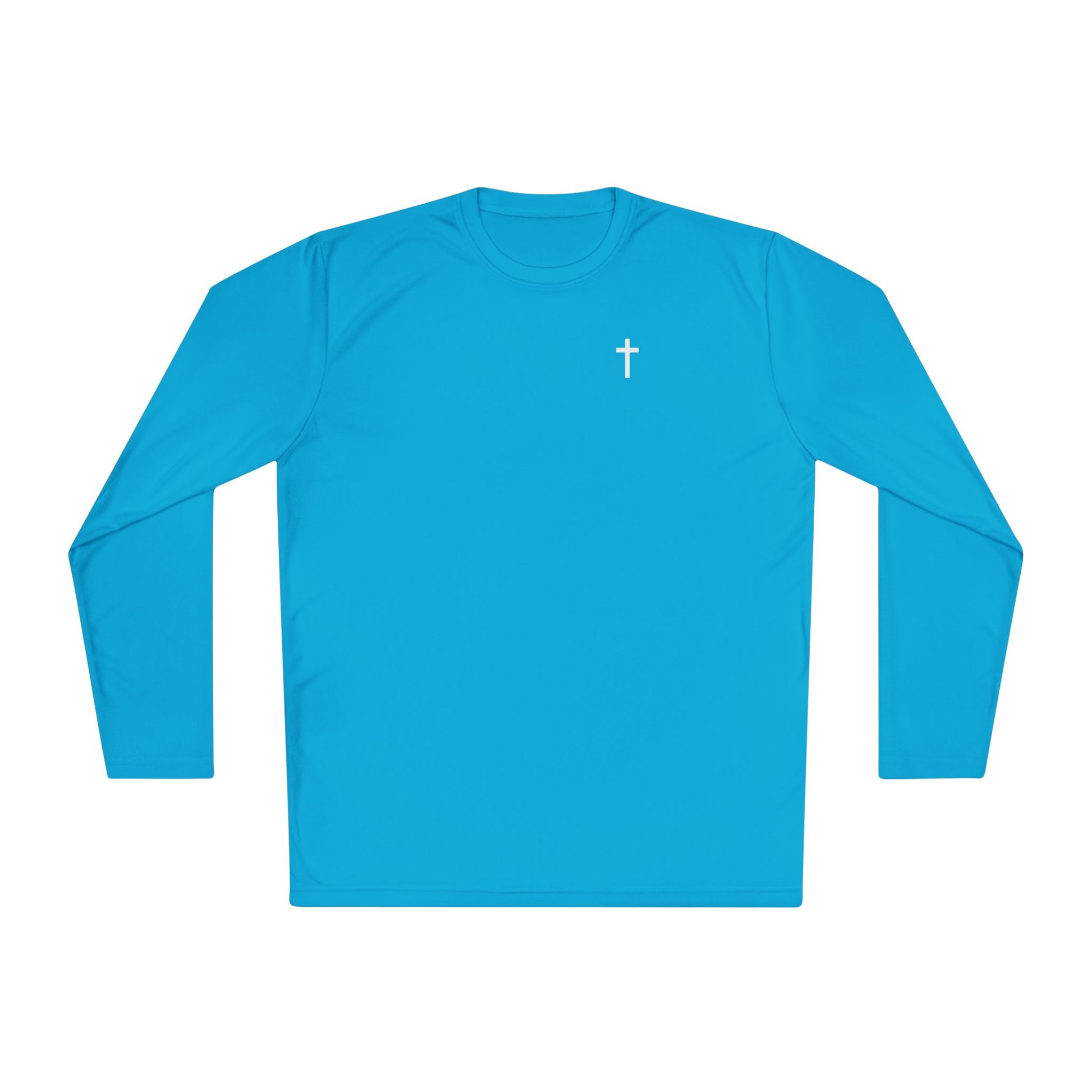 Step out in comfort and purpose with this lightweight Sport-Tek long-sleeve tee. Designed for active lifestyles, it features breathable, moisture-wicking fabric to keep you cool and comfortable, no matter the activity. The clean and subtle cross detail serves as a quiet testament to your faith, making it perfect for workouts, outdoor adventures, or casual wear. With its lightweight feel and durable construction, this tee is as versatile as it is meaningful, blending performance with inspiration.