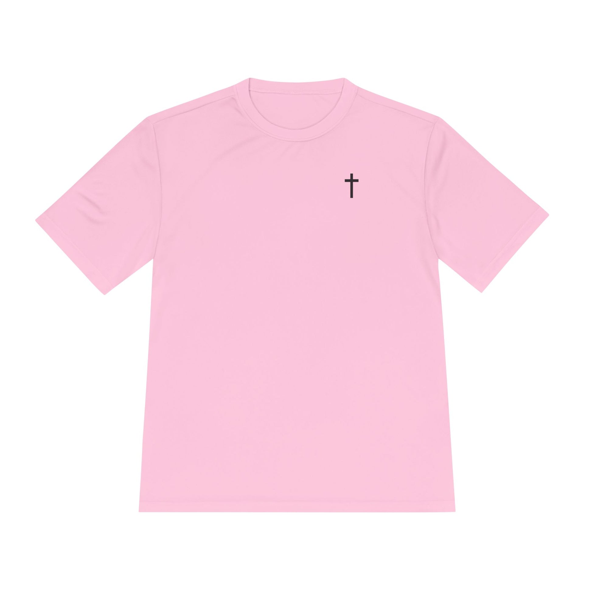 Elevate your workouts and your faith with our Moisture-Wicking T-Shirt. This high-performance shirt is designed to keep you dry and comfortable, allowing you to focus on what's important—both in your fitness journey and in your walk with Christ.