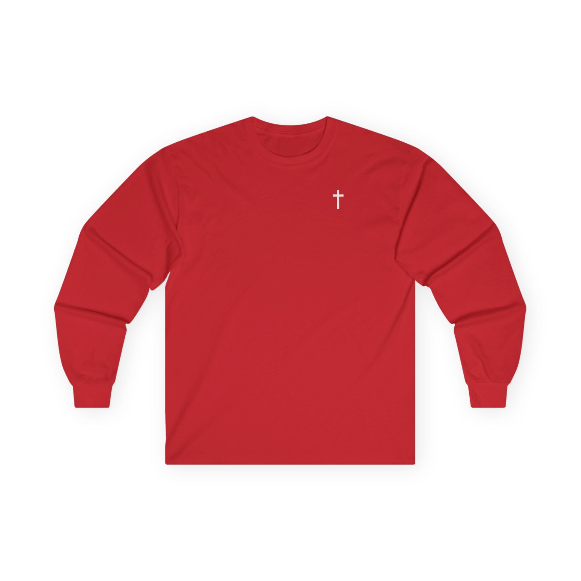Unisex Simple Christian 100% Cotton Long Sleeve with White Cross (Gildan Product)